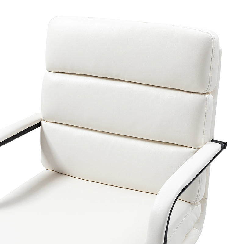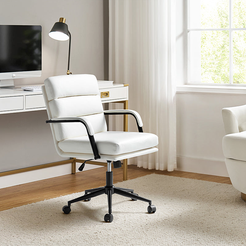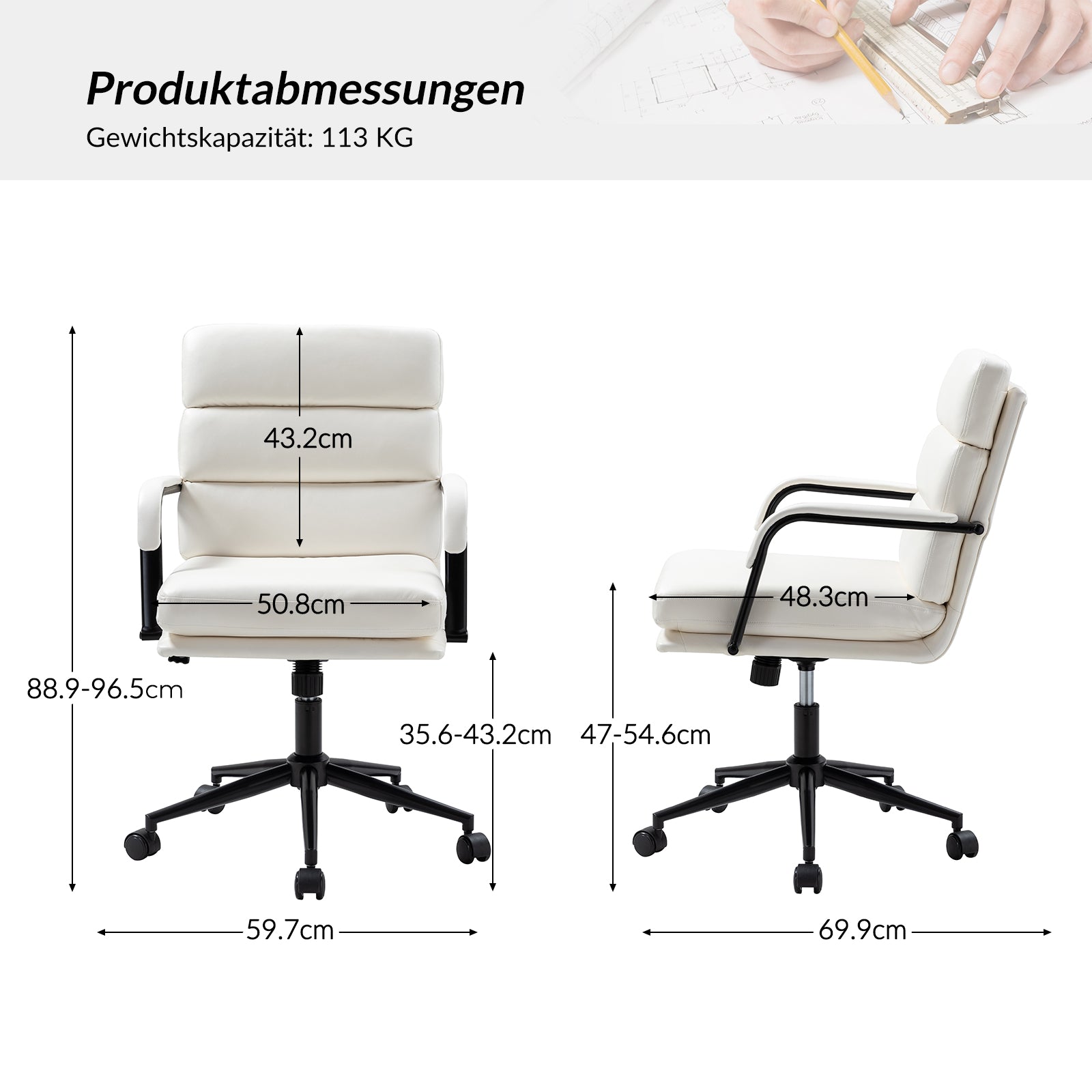 Dieser Bürostuhl vereint moderne, industrielle, zeitgenössische und mid-century Design-Elemente zu einer stilvollen und funktionalen Sitzlösung. Der hochwertige PU-Lederbezug verleiht ihm nicht nur eine edle Optik, sondern macht ihn auch besonders pflegeleicht. Dank der 360-Grad-Drehfunktion ermöglicht der Stuhl mühelose Bewegungen, während die Wippfunktion mit Arretierung individuellen Komfort bietet. Die ergonomische Form sorgt für optimale Unterstützung bei langen Arbeitsstunden und macht ihn zur idealen Wahl als Home-Office-Stuhl, Chefsessel, Konferenzstuhl oder Schreibtischstuhl. Egal ob im Homeoffice oder im professionellen Arbeitsumfeld – dieser Stuhl verbindet Eleganz mit Funktionalität und wertet jeden Arbeitsplatz auf.
