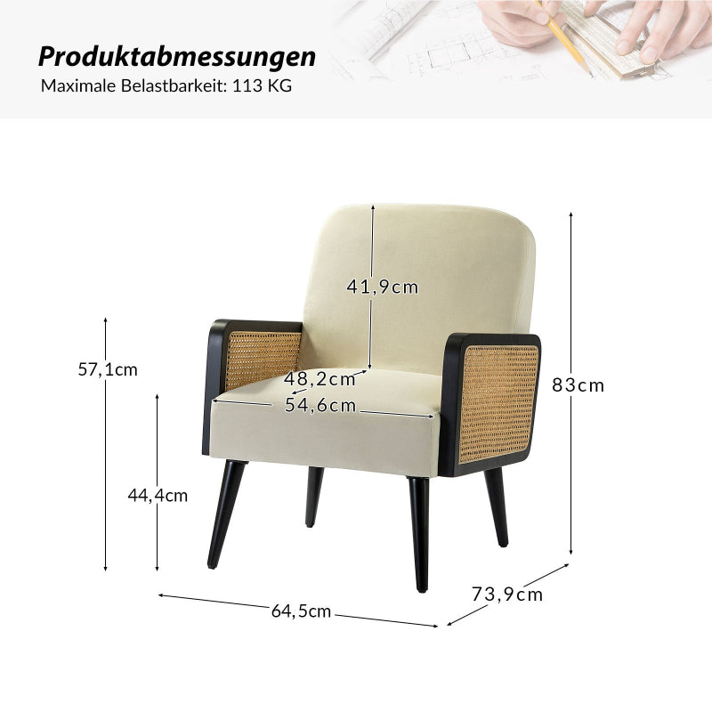 Dieser Sessel wird in sorgfältiger Handarbeit von erfahrenen Handwerkern hergestellt. Sie vereinen eine atemberaubende, handgefertigte Rattan-Konstruktion mit Massivholz, um einen natürlichen und komfortablen Platz für den Tisch zu schaffen. Das unverwechselbare Design zeigt eine durchbrochene Konstruktion für ein offenes und luftiges Gefühl. Mit seinem natürlichen und modernen Stil und seiner unglaublichen Langlebigkeit wird sich dieser Stuhl problemlos in Ihre Einrichtung einfügen. Er ist die perfekte Wahl für das Wohn- und Schlafzimmer.