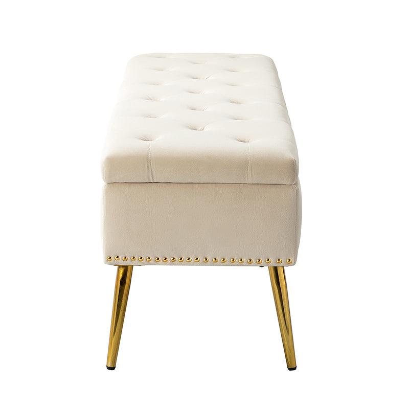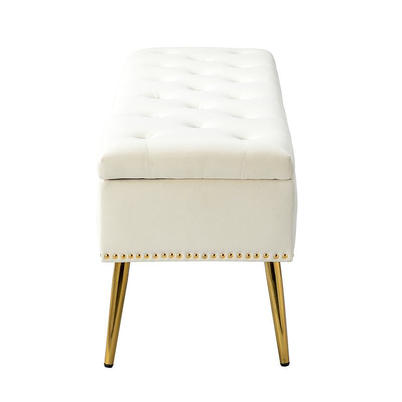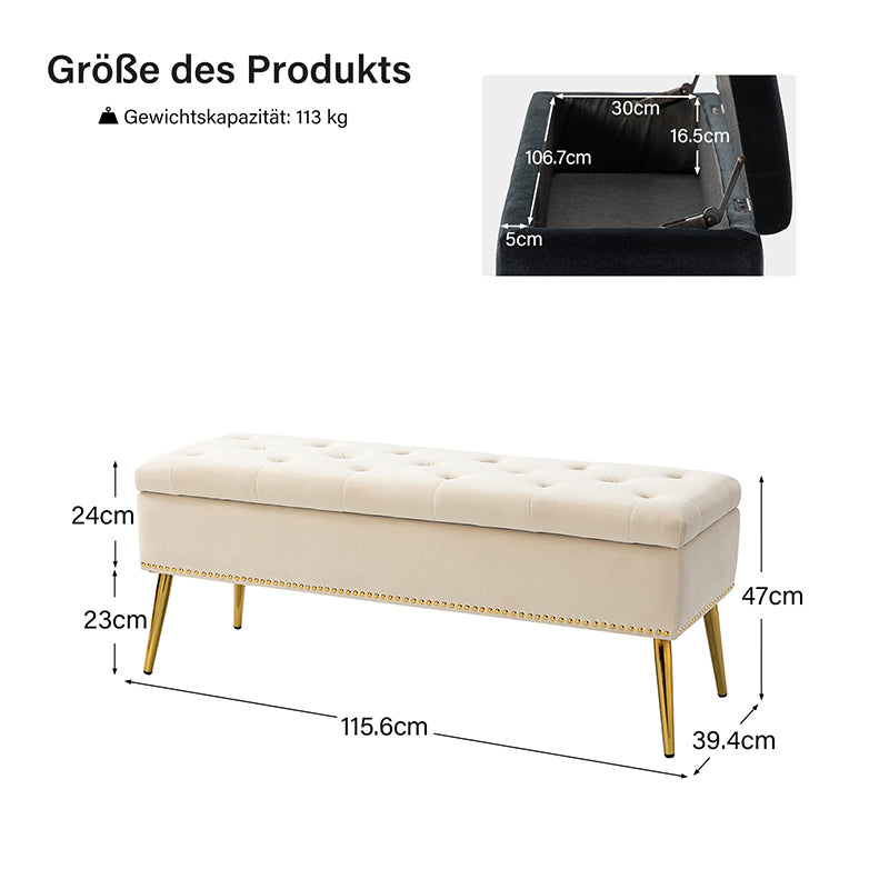 So ein schönes Qualitätsende der Bettaufbewahrungsbank. Einfach zusammengestellt, robuste, wunderschöne Farbe und Velveteen -Stoff. Deckel bleibt geöffnet! Wir lieben es!