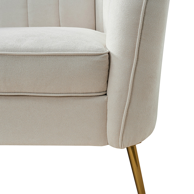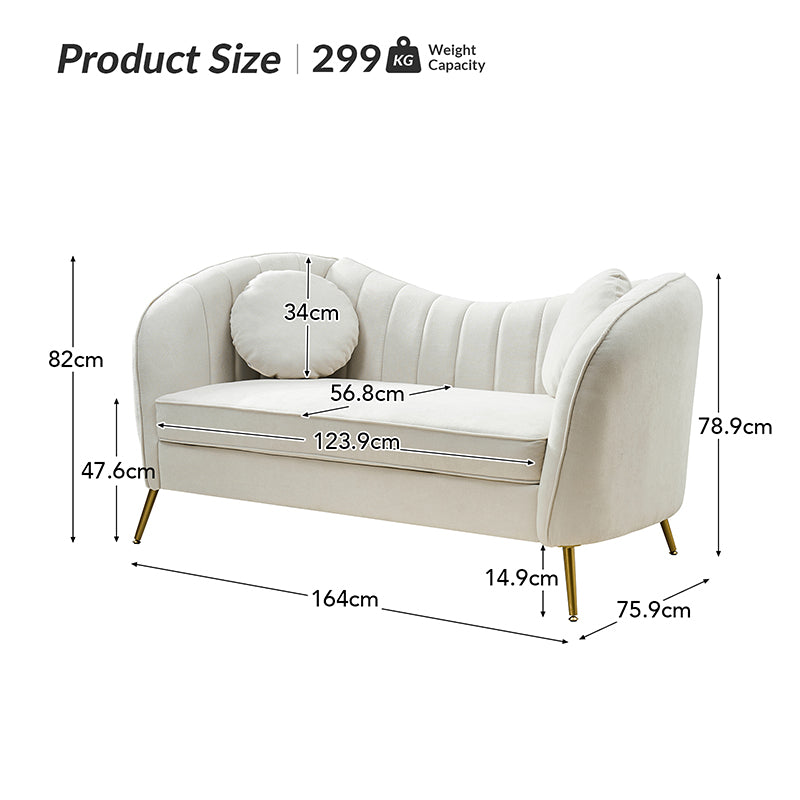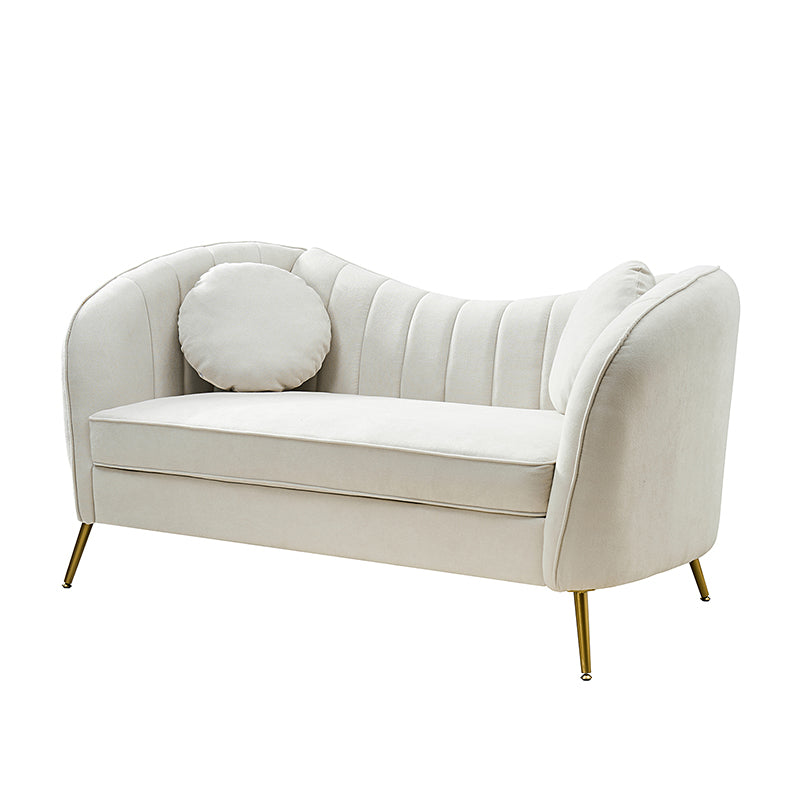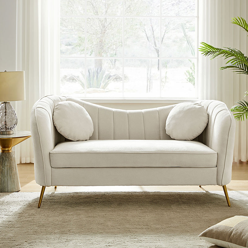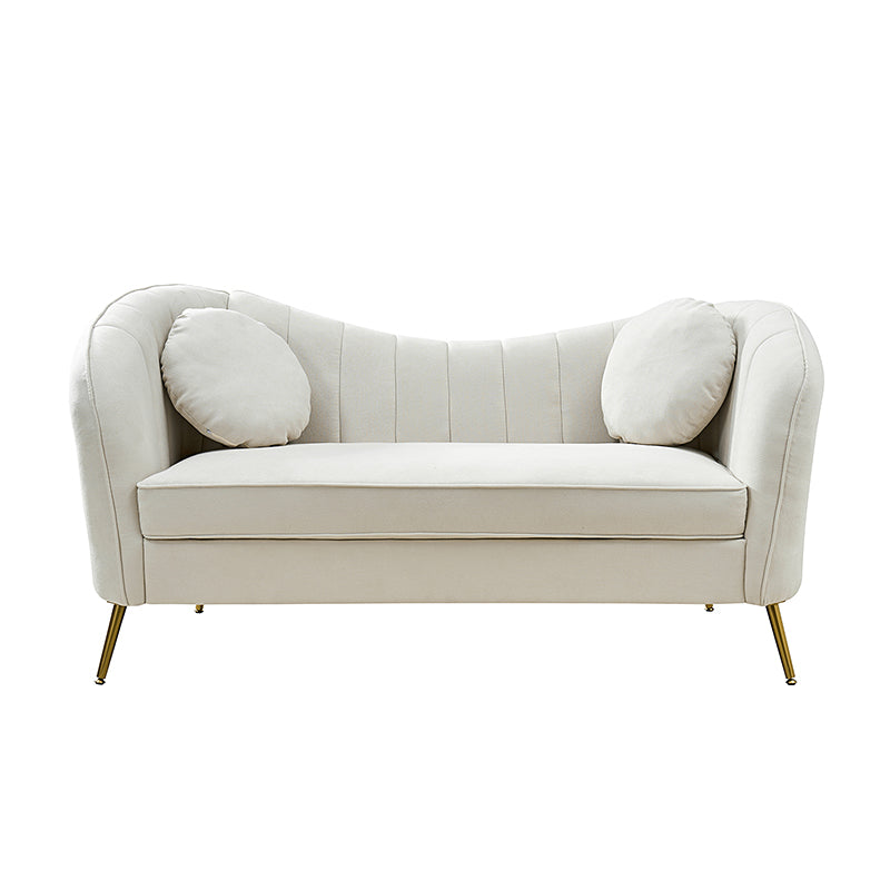 Dieses moderne Loveseat verfügt über einen hochwertigen Polyesterbezug, der sowohl edel aussieht als auch angenehm auf der Haut liegt. Ein durchgehendes Sitzkissen und abgerundete Armlehnen gehen in eine niedrige, besondere Rückenlehne über – ein stilvolles, modernes Möbelstück für Ihr Zuhause. Goldene Metallbeine stützen das Loveseat und setzen einen eleganten Kontrast zum weichen Stoff. Das Kissen ist mit hochdichtem Schaumstoff gefüllt, der formstabil bleibt und ein angenehmes Liegegefühl vermittelt – wie auf Baumwolle oder Wolken. Zwei weiche Kissen sorgen für zusätzlichen Komfort. Ob Sie sich nach einem langen Arbeitstag ausstrecken, einen Filmabend genießen oder ein Gespräch mit Freunden führen – dieses Loveseat begleitet die schönen Momente zu Hause mit Ihren Liebsten.