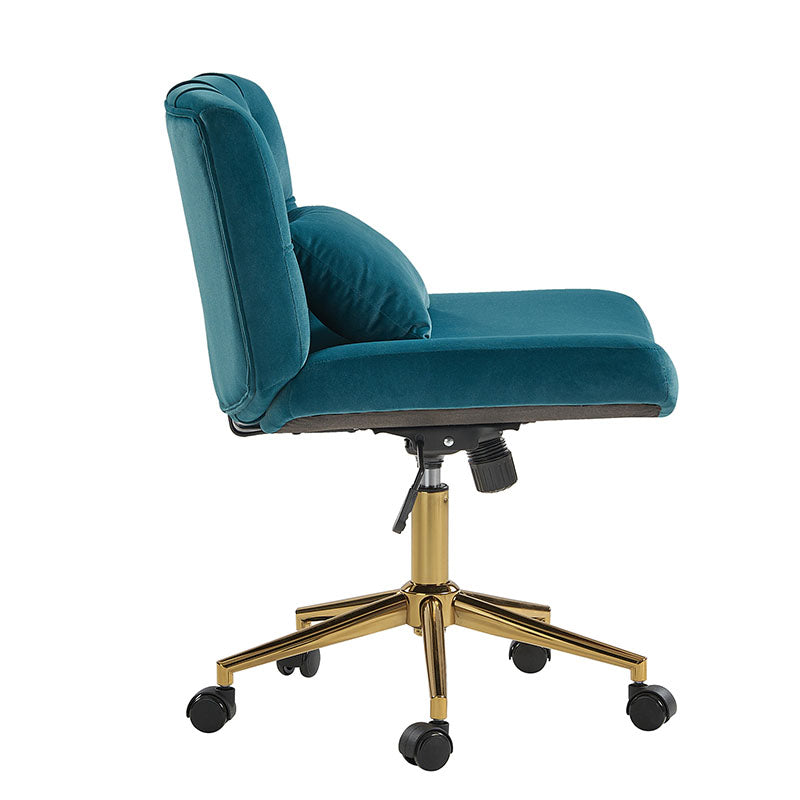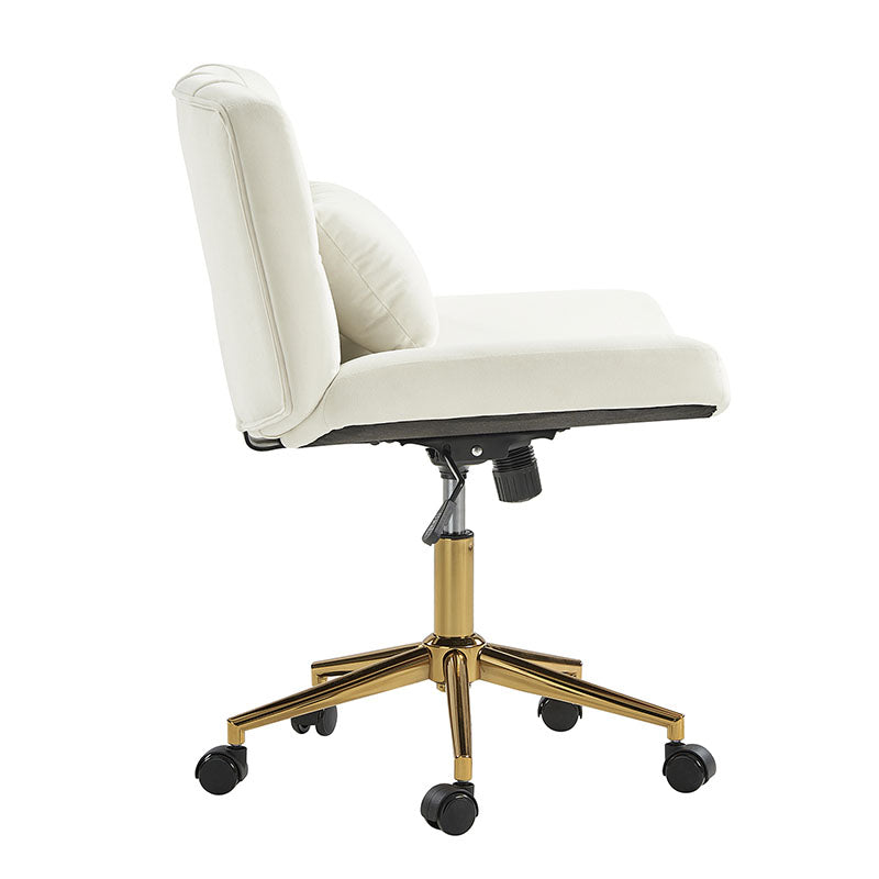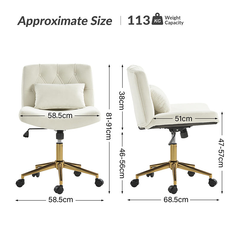 Ein eleganter und vielseitiger moderner Bürostuhl, der sich für Heimbüros und moderne Arbeitsplätze eignet. Dieser Stuhl ist mit weichem Flanell gepolstert und strahlt Komfort und Stil aus. Die stabilen Metallfüße mit den leichtgängigen Rollen sorgen für eine einfache Mobilität am Arbeitsplatz. Für Ihren Komfort ist er mit einem stützenden Kissen für den unteren Rücken ausgestattet, das die richtige Haltung während der Arbeit fördert. Der drehbare Sitz ermöglicht eine mühelose Bewegung und steigert Ihre Produktivität. Mit der verstellbaren Höhe können Sie den Stuhl auf Ihre bevorzugte Höhe einstellen. Die SGS-zertifizierte Edelstahl-Gasfeder sorgt für zuverlässige Unterstützung und Langlebigkeit. Dieser Arbeitsstuhl bietet die Möglichkeit, sanft zu wippen, um eine entspannende Pause während intensiver Arbeitssitzungen zu ermöglichen. Verbessern Sie Ihren Arbeitsplatz mit diesem modernen Arbeitsstuhl, der Funktionalität und Design für eine produktive und komfortable Arbeitsumgebung vereint.
