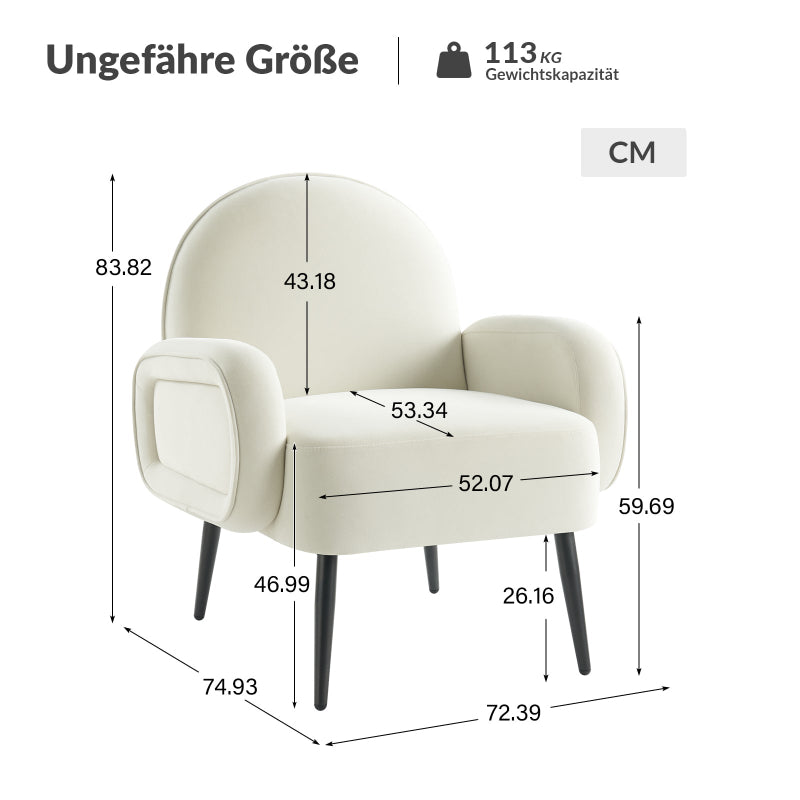 Erleben Sie unvergleichlichen Komfort mit diesem vielseitigen Sessel, ideal für Ihr Wohnzimmer, Schlafzimmer, Kinderzimmer oder gemütliche Ecken wie Flure oder Balkone. Mit seinem eleganten, modernen Design fügt er sich nahtlos in verschiedene Einrichtungsstile ein. Der Sessel ist mit luxuriösem Samtstoff bezogen und verfügt über eine 20D superweiche Schwammpolsterung für außergewöhnlichen Komfort und Unterstützung. Die schwarzen, verstellbaren Metallfüße verleihen einen zeitgenössischen Touch und sorgen für Stabilität. Schnell und einfach zu montieren, eignet sich dieser Sessel perfekt zum Entspannen oder als stilvolles Akzentstück und verspricht sowohl Entspannung als auch Eleganz.